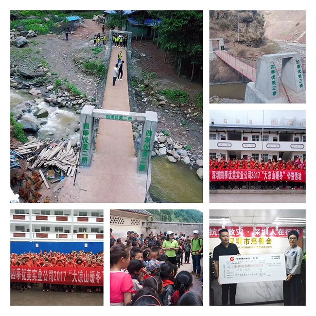 四季優美投入27萬元在昭覺縣捐建第四座上學橋——特布洛鄉摩鋪村四季優美橋,以解決村里孩子雨季上學難、村民出行難的問題。